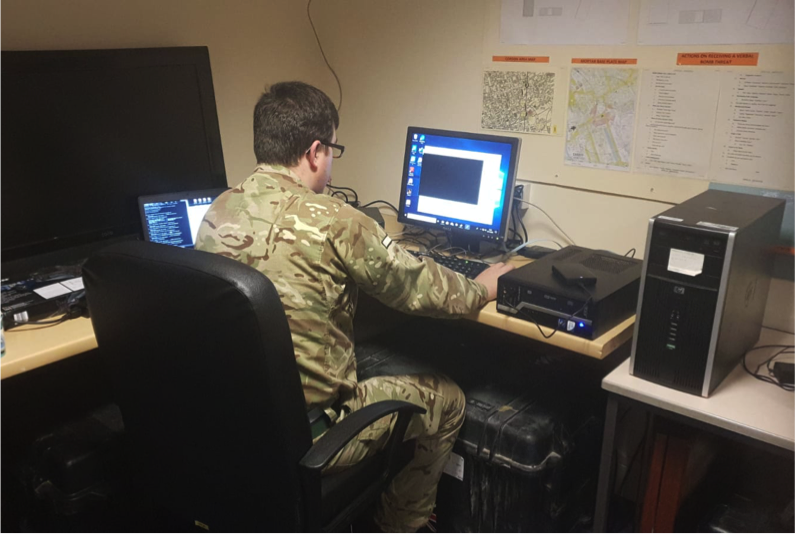 Relaying intelligence reports from a Command Vehicle in Sennybridge 2017.