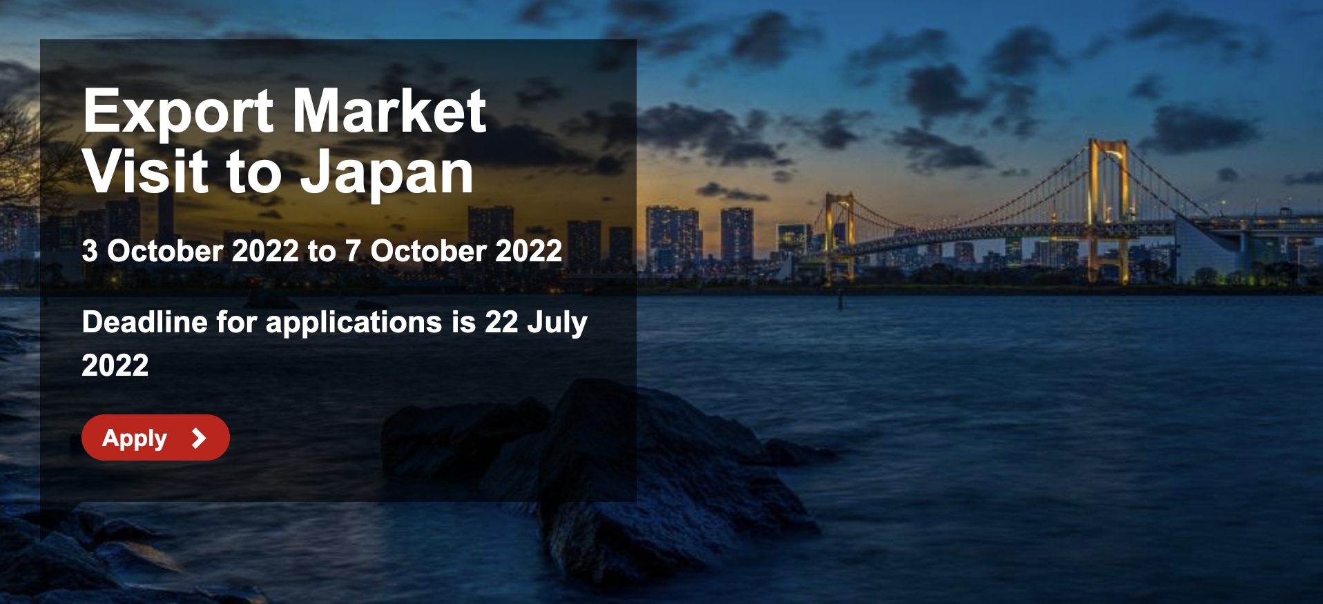Kindly note there will be no fee associated to participate in this cyber trade mission, but the selected companies will need to cover their own expenses (e.g flight, hotel, etc).
